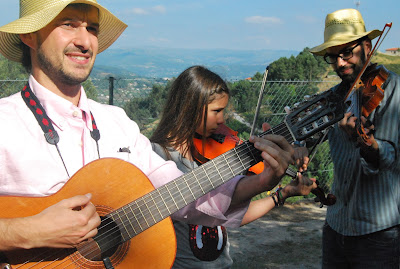 "Os Baiões", creio que é assim que o grupo se chama, não têm rival na região, e toca (e canta) músicas do tempo dos nossos avoengos, que é preciso registar, aprender, divulgar, cantar, tocar... Além do mais, o Júlio gostou de tocar com o João e vice-versa (O Júlio e os outros violonistas)... Mas temos mais músicos na família: o Luís Filipe, o Tiago, o Pedro, o Gusto (acordeão), a filha da Paula (e neta do António Carneiro)...